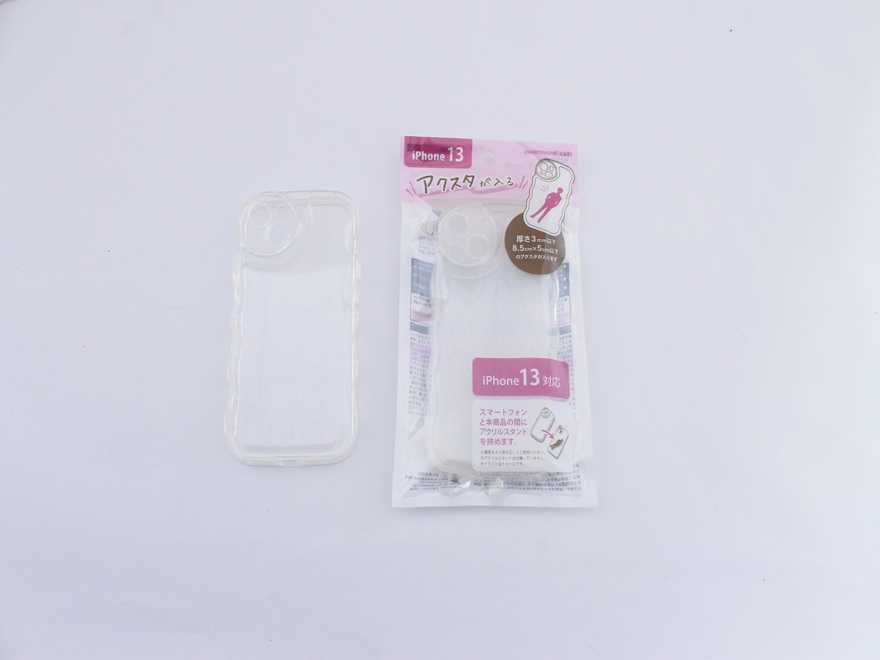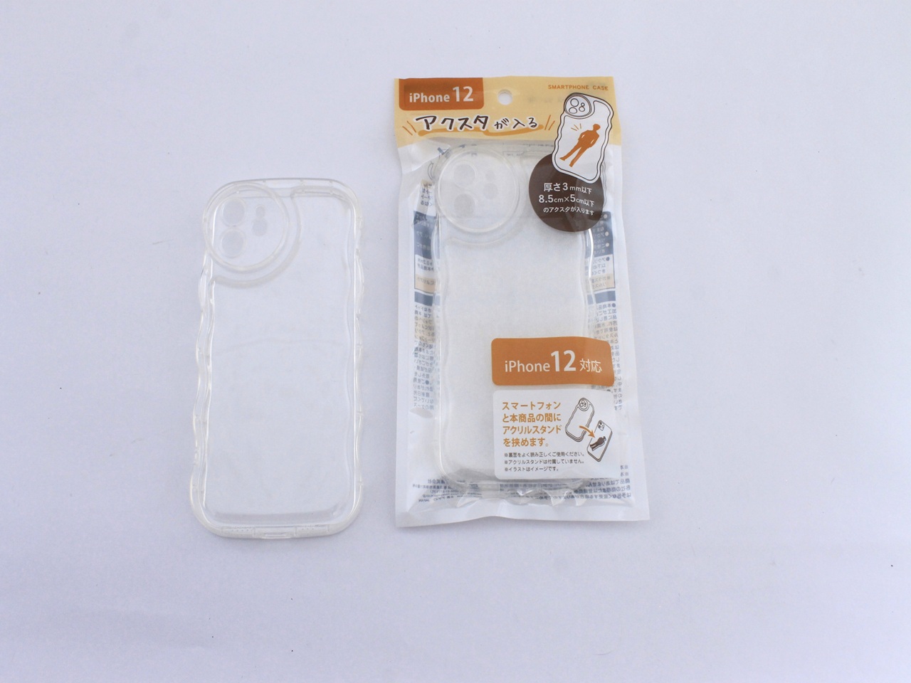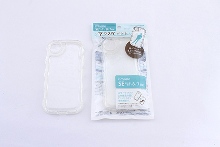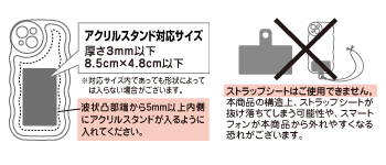 アクリルスタンドとスマートフォンの間に市販の背面用フィルムを入れて使用される場合、厚み0.2mm以下の背面用フィルムをご使用ください。
