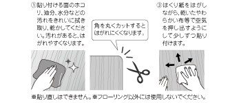 ①接着面の水分、油分、ほこりを取り除いてください。